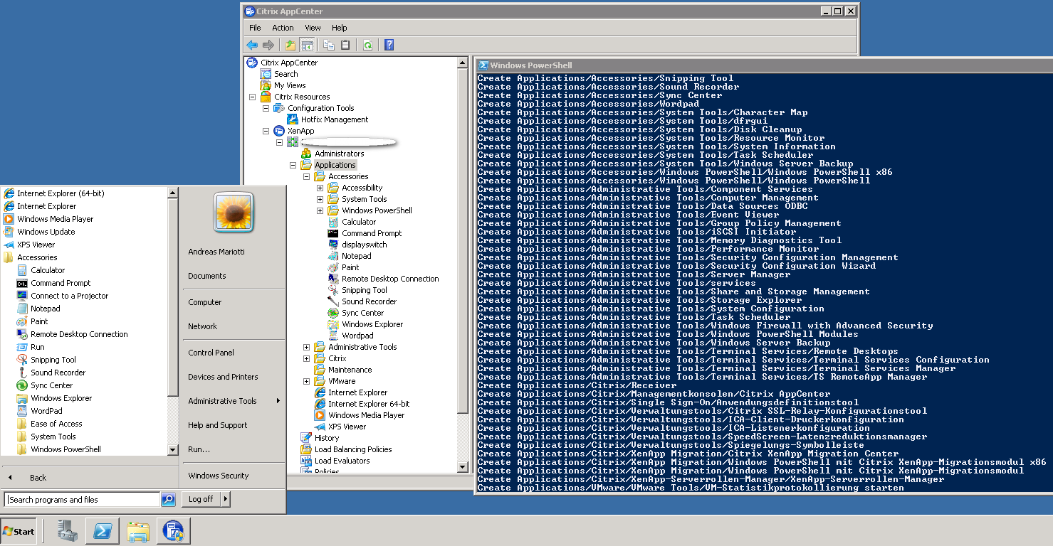 Das folgende PowerShell Skript wurde von mir erstellt um automatisch Veröffentlichte Anwendungen (Published Applications) unter XenApp 6.5 zu erstellen. Das Skript liest hierzu das Startmenü des Rechners aus, ermittelt alle darin enthaltenen Verknüpfungen incl. deren Eigenschaften, und erstellt auf dieser Basis die Veröffentlichten Anwendungen in XenApp.