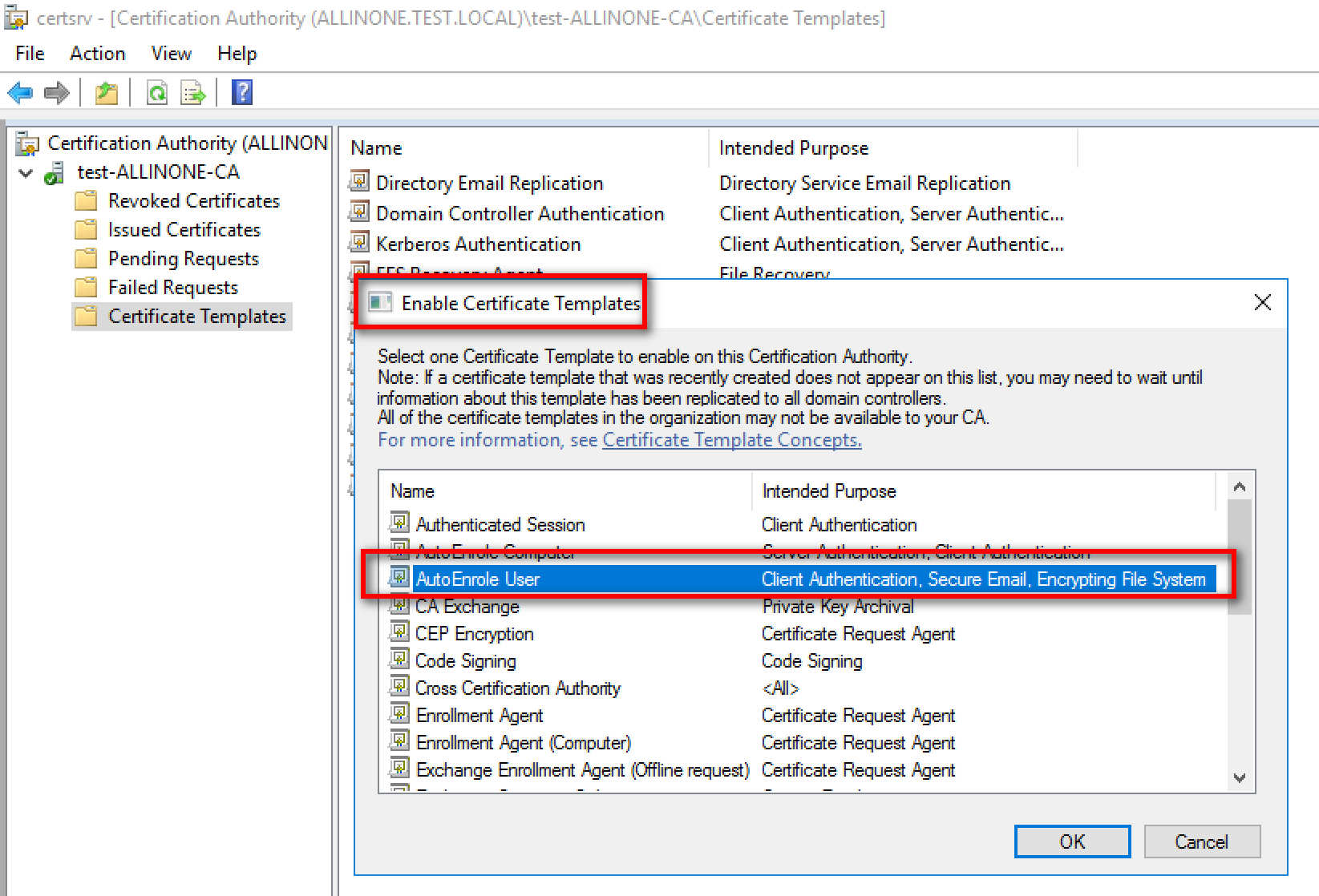 Schritt 6 sicherstellen, dass bei den Benutzern die ein Zertifikat bekommen sollen im AD Benutzerkonto auch eine E-Mail Adress hinterlegt ist, da diese für das Benutzerzertifkat benötigt wird.